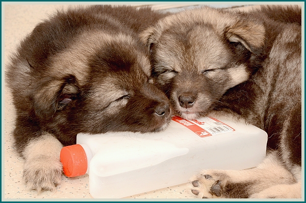 Seuraava tulikin helpommalla vaikkakin perätilassa, 10:45, riistanvärinen narttupentu jolla istukka kaulan ympärillä todella tiukasti, pentu oli kuitenkin virkeä alusta alkaen. Pikkupoika syntyi kolmantena 11:00, myöskin riistanvärinen. Neljäs syntyi 11:22 ilman kalvoja, virkeänä. Viidentenä syntyi vaihteeksi uros 11:53 mutta oli eloton ja huulet hiukan sinersivät. Heilauttelin pentua muutaman kerran mutta ei mitään merkkejä elämisestä. Kuivasin pentua lähes raivokkaasti ja pentu ihmetyksekseni alkoi virkoamaan! 20 min kuivailin, heiluttelin ja kuivailin suuta limasta ja kunnon rääkäisy tuli kun poika pääsi tissille.